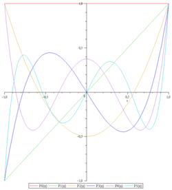 | Многочлены Бернштейна — Сеге • Многочлены Бесселя • Многочлены Гегенбауэра • Многочлены Гейне — Ахиезера • Многочлены Кравчука • Многочлены Лагерра • Многочлены Лежандра • Многочлены Полачека • Многочлены Чебышёва • Многочлены Шарле • Многочлены Эрмита • Многочлены Якоби |