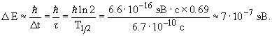 распадается путем испускания γ-квантов с периодом полураспада T1/2 = 6.7·10-10 с.
