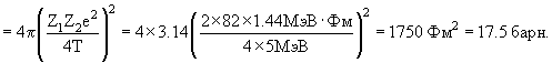 3. Вычислить сечение рассеяния a -частицы с кинетической энергией T = 5 МэВ кулоновским полем ядра 208Pb под углами больше 900.