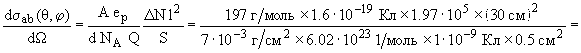 dN/dΩ = ΔN/ΔΩ, ΔΩ= S/l2, N = Q/ep, n = d·NA/A , где ep