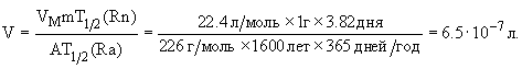 222Rn. Какой объем радона при нормальных условиях будет находиться в