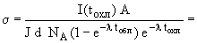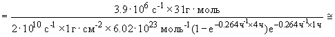 tохл = 1 час после окончания облучения, оказалась I(tохл) = 3.9·106 распадов/с.