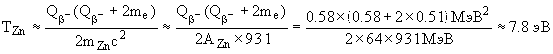 где mZn - масса ядра 64Zn. Из законов сохранения имеем