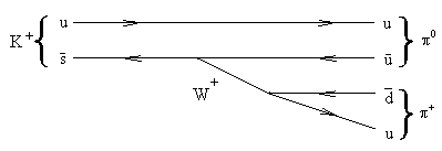 Слабое взаимодействие допускает несохранение странности и изоспина. Диаграмма