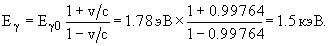 α = Te/mec2 =1000 МэВ/0.511 МэВ = 1956.9.