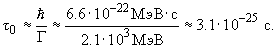 Среднее время жизни W-бозона в его собственной системе τ0 ≈ ћ/Г ,