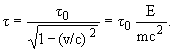 τ - время жизни W-бозона с учетом релятивистского замедления времени