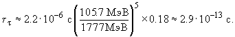 Используя правило Сарджента получаем для времени жизни τ-лептона