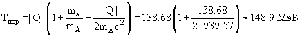 Энергия реакции Q = -138.68 МэВ Используем формулу (3):