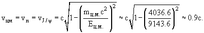 Eцм = Tцм + mnc2 + mJ/ψc2 = (5107 + 939.6 + 3097) = 9143.6 МэВ. Энергия покоя центра масс mцмc2 = mnc2 + mJ/ψc2 = (939.6 + 3097) = 4036.6 МэВ. Для скорости центра масс и конечных частиц получаем: