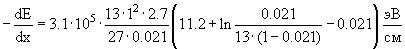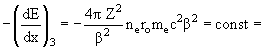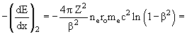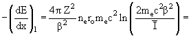 небольших кинетических энергиях частиц. ln(1 − β2) − β2 = −(−β2 + β4/2 +...) − β2 ≈ −β4/2 → 0 при β2 << 1. Проиллюстрируем это, проведя расчет вышеописанной задачи по формуле (3). Получим тот же результат: 92.314 МэВ/см, при этом вклад каждого из членов формулы