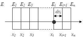 где Ei – энергия частиц, прошедших в поглотителе расстояние xi (см. рисунок).